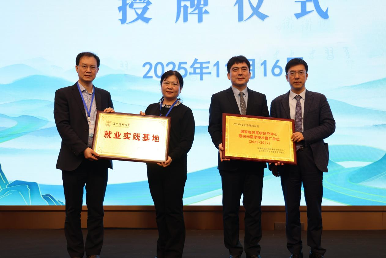 本次大会取得重要合作成果,温州医科大学附属眼视光医院正式授予安阳市眼科医院“国家临床医学研究中心眼视光医学技术推广单位(2025-2027)”与“就业实践基地”荣誉牌匾。会议期间,温州医科大学附属眼视光医院与安阳市眼科医院开展战略合作座谈双方就建立常态化沟通协调机制、拟定具体合作项目清单、探索共建科研协作平台等后续行动计划达成重要意向双方未来在提升区域眼健康服务水平、推动眼科医学创新发展方面实现优势互补、互利共赢奠定了坚实基础。