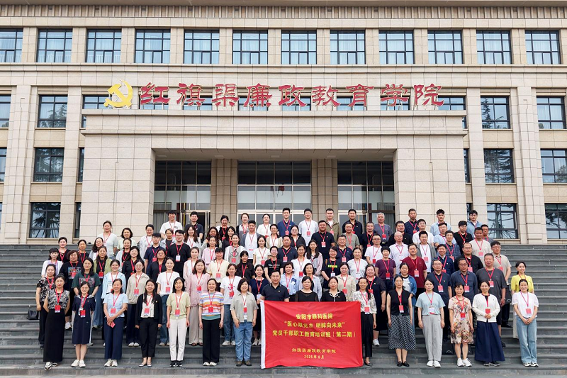 在党的103岁生日到来之际,为深入贯彻中央八项规定精神学习教育工作要求,全面提升党员干部职工政治素养与纪律意识,进一步营造风清气正的干事创业氛围,6月7日至8日和14日至15日,我院党委书记霍永军和院长屠永芳先后带领党员干部职工分两批来到红旗渠廉政学院开展“医心跟党走 明眸向未来”教育培训活动。